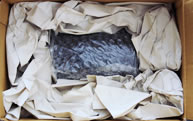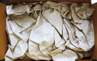 商品を真ん中に置き、その周辺に紙(新聞紙など)などの緩衝材を詰める。